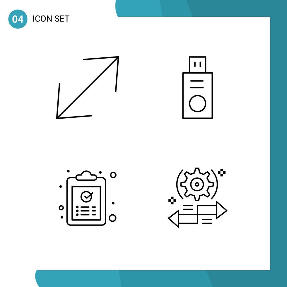 4 User Interface Line Pack of modern Signs and Symbols of arrow paste disk clipboard setting Editable Vector Design Elements