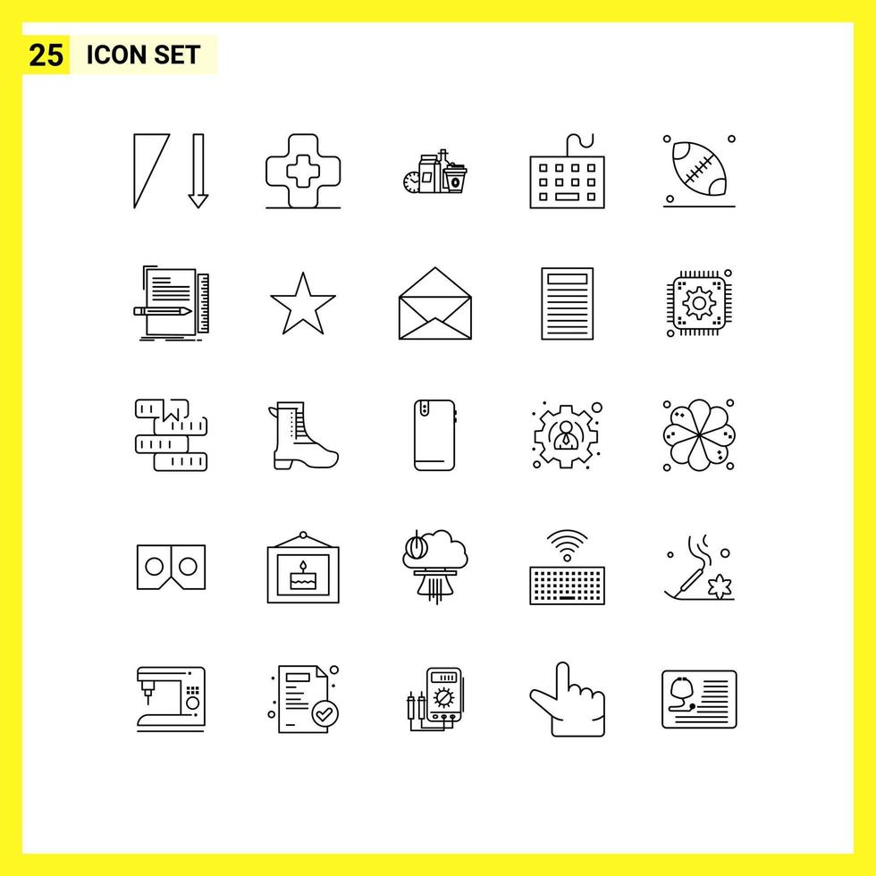 Mobile Interface Line Set of 25 Pictograms of ball keyboard milk hardware devices Editable Vector Design Elements