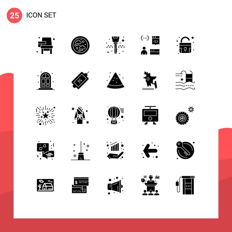 25 Thematic Vector Solid Glyphs and Editable Symbols of programmer develop technology coding taxi Editable Vector Design Elements Free Vector