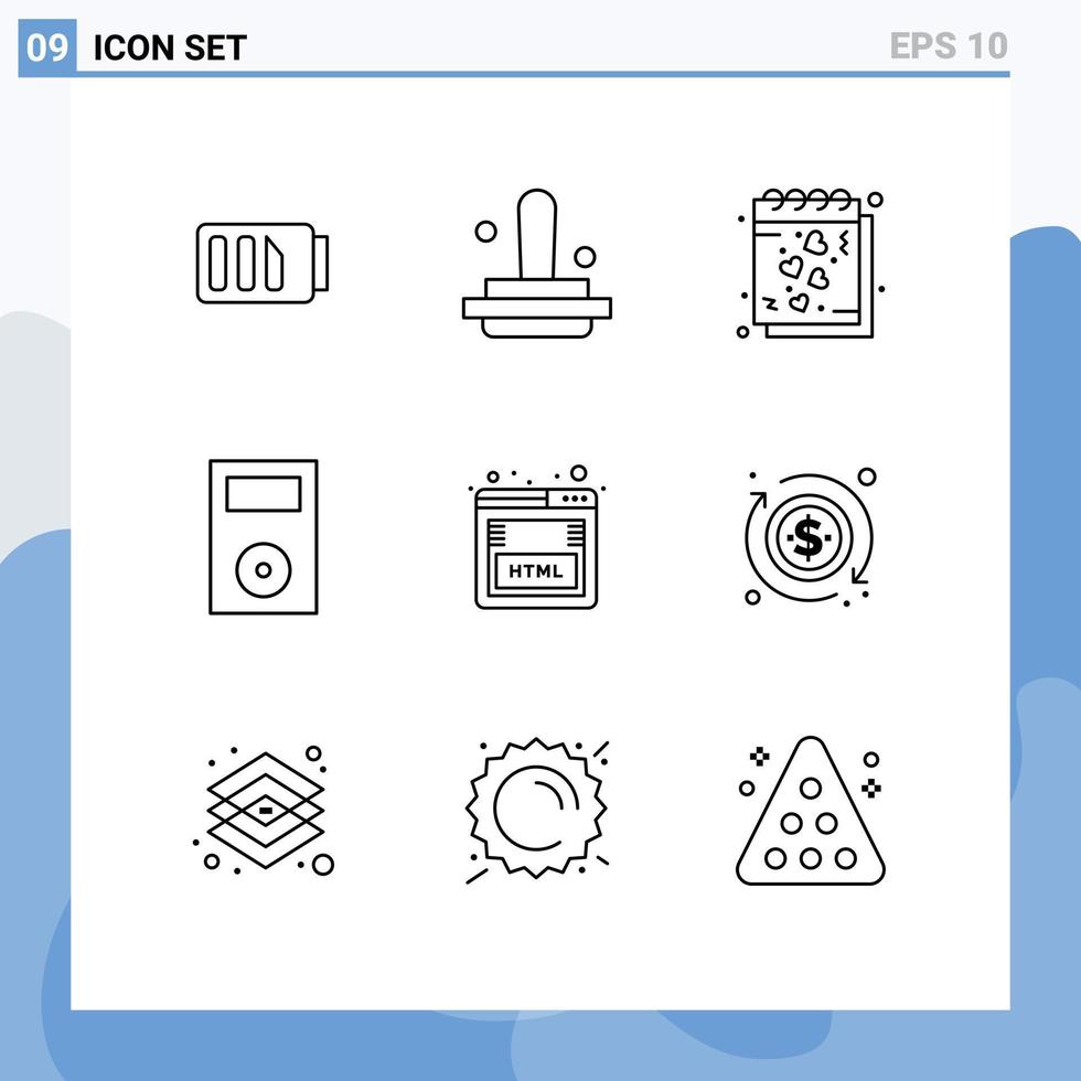 Modern Set of 9 Outlines Pictograph of technology ipod date electronics romantic Editable Vector Design Elements