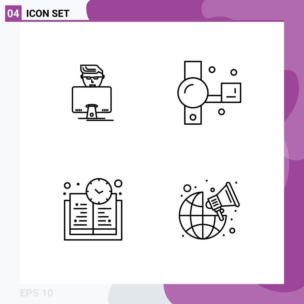 4 Line concept for Websites Mobile and Apps hacker book time programmer handycam learning time Editable Vector Design Elements Free Vector