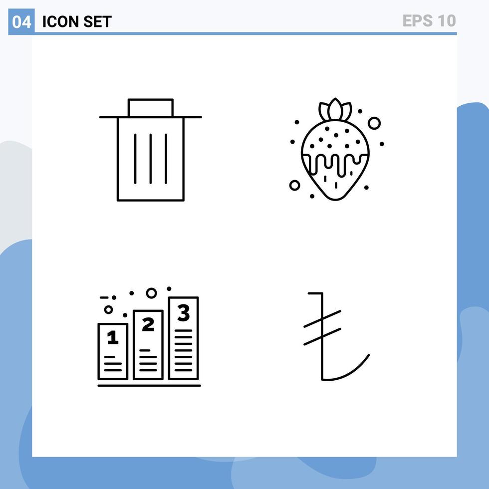 Mobile Interface Line Set of 4 Pictograms of delete chart user strawberry processing Editable Vector Design Elements Free Vector