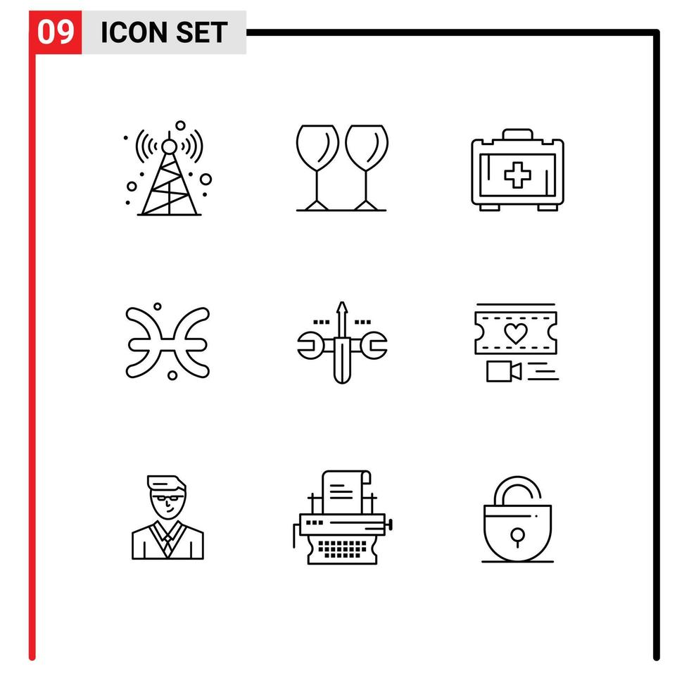 Universal Icon Symbols Group of 9 Modern Outlines of toolings computing health bag cloud pisces Editable Vector Design Elements