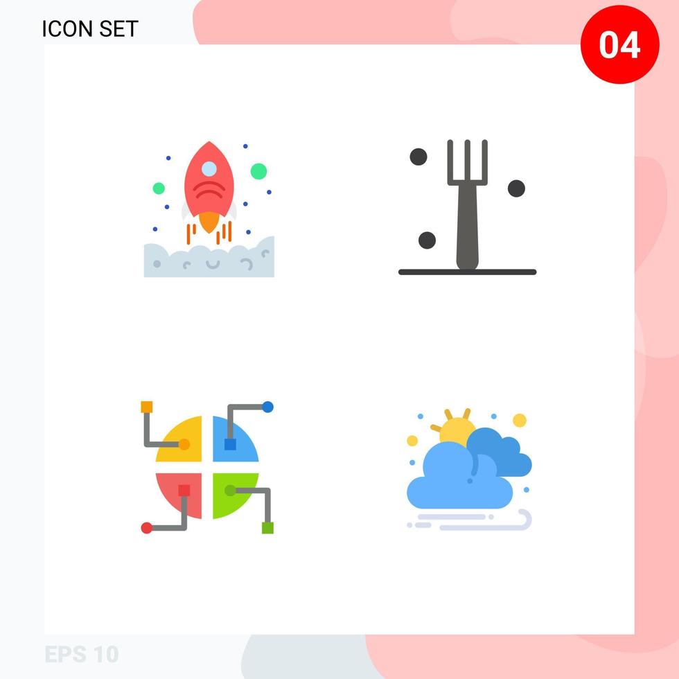 4 Flat Icon concept for Websites Mobile and Apps launching map up tableware cloud Editable Vector Design Elements Free Vector