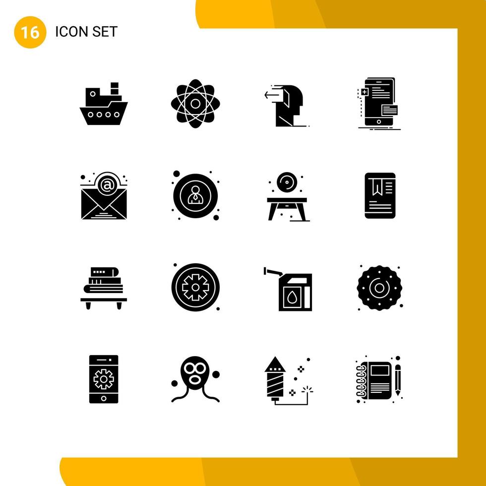 Mobile Interface Solid Glyph Set of 16 Pictograms of email phone mind mobile frontend Editable Vector Design Elements