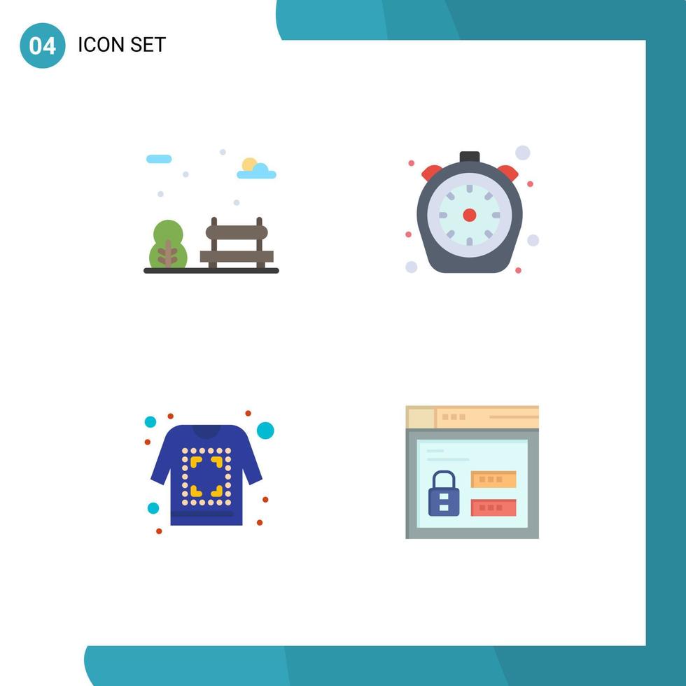 Mobile Interface Flat Icon Set of 4 Pictograms of bench printing chrono time sketch Editable Vector Design Elements