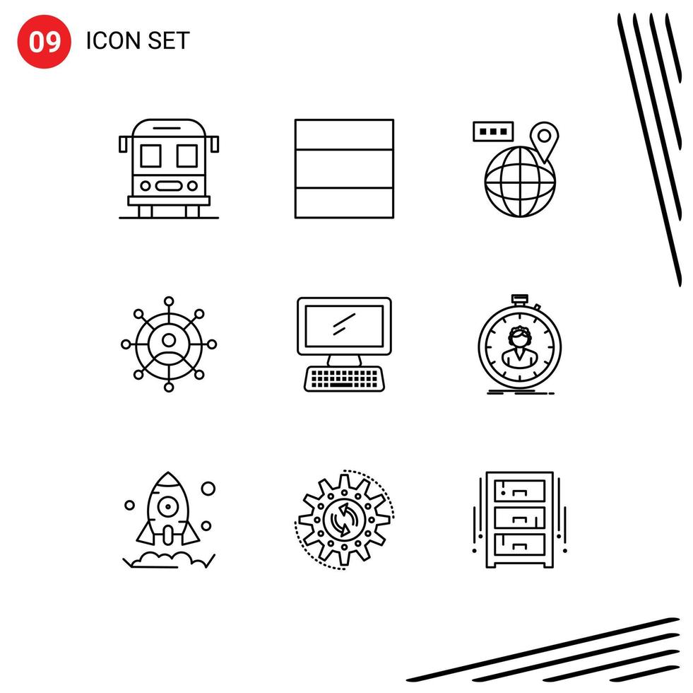 Set of 9 Modern UI Icons Symbols Signs for fast keyboard location device computer Editable Vector Design Elements