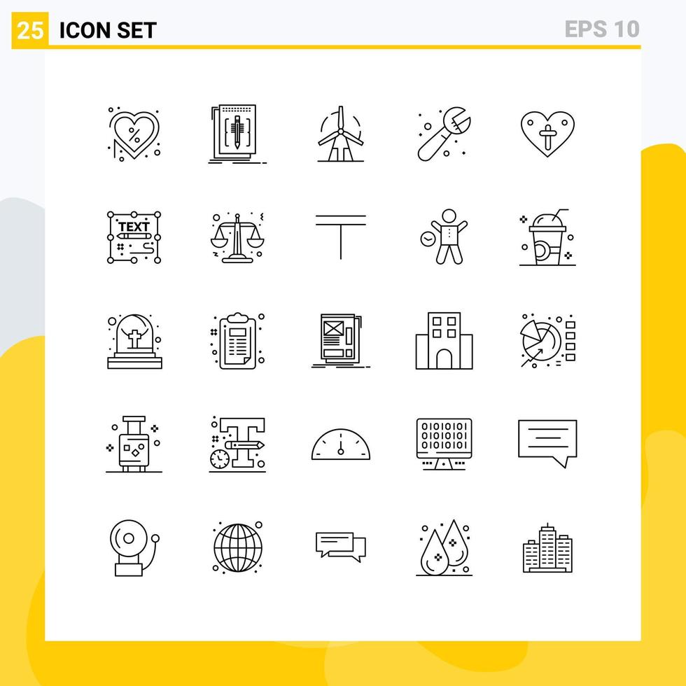 25 User Interface Line Pack of modern Signs and Symbols of plumbing mechanical language windmill green Editable Vector Design Elements Free Vector