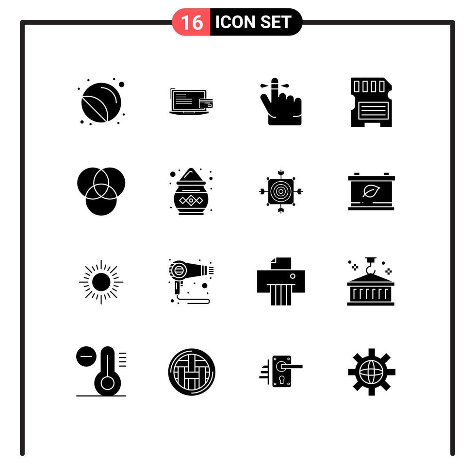 16 Universal Solid Glyphs Set for Web and Mobile Applications rgb memory credit card hardware mind Editable Vector Design Elements Free Vector