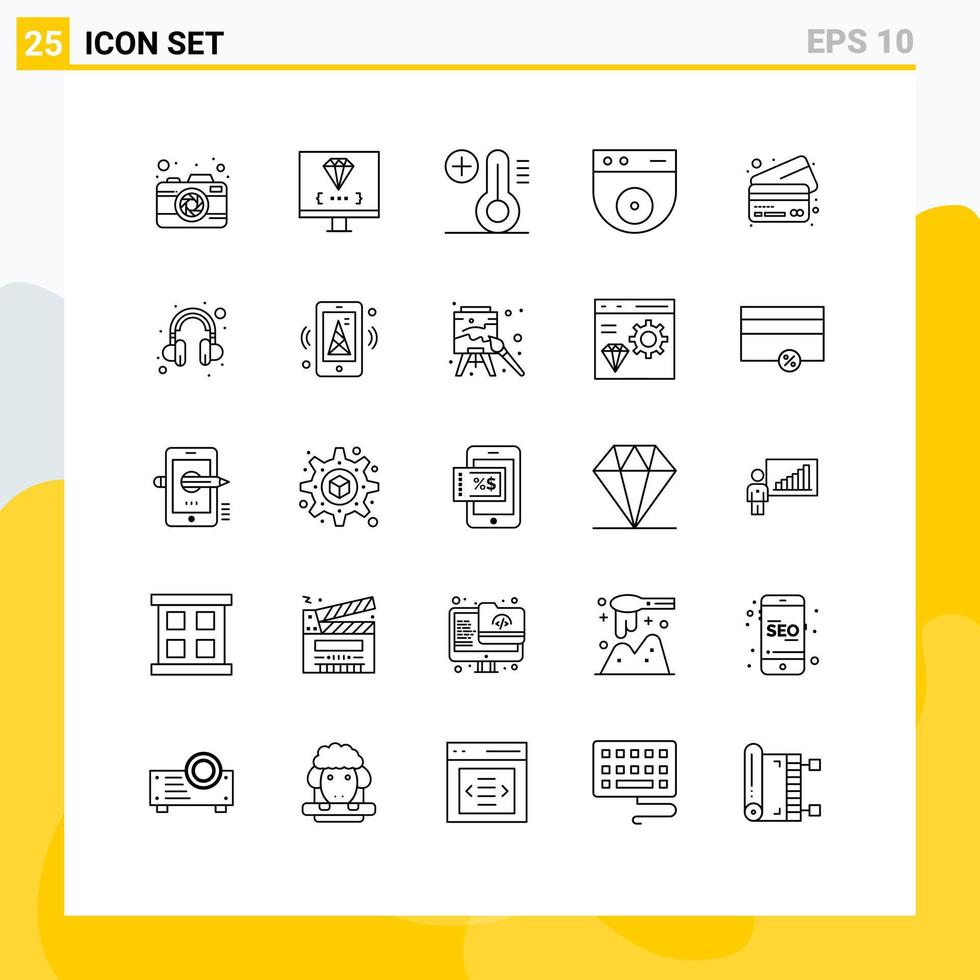 Group of 25 Modern Lines Set for credit bank programming security cam Editable Vector Design Elements