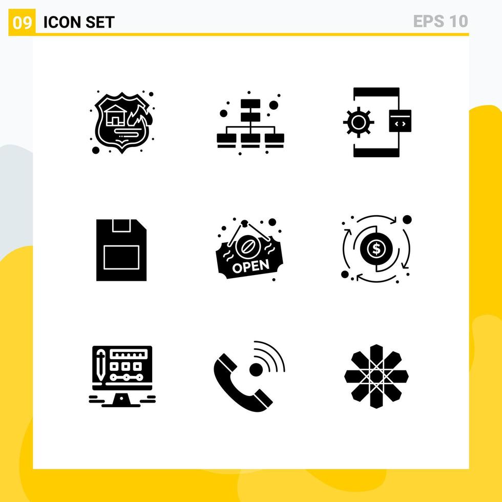User Interface Pack of 9 Basic Solid Glyphs of shop data coding storage card Editable Vector Design Elements