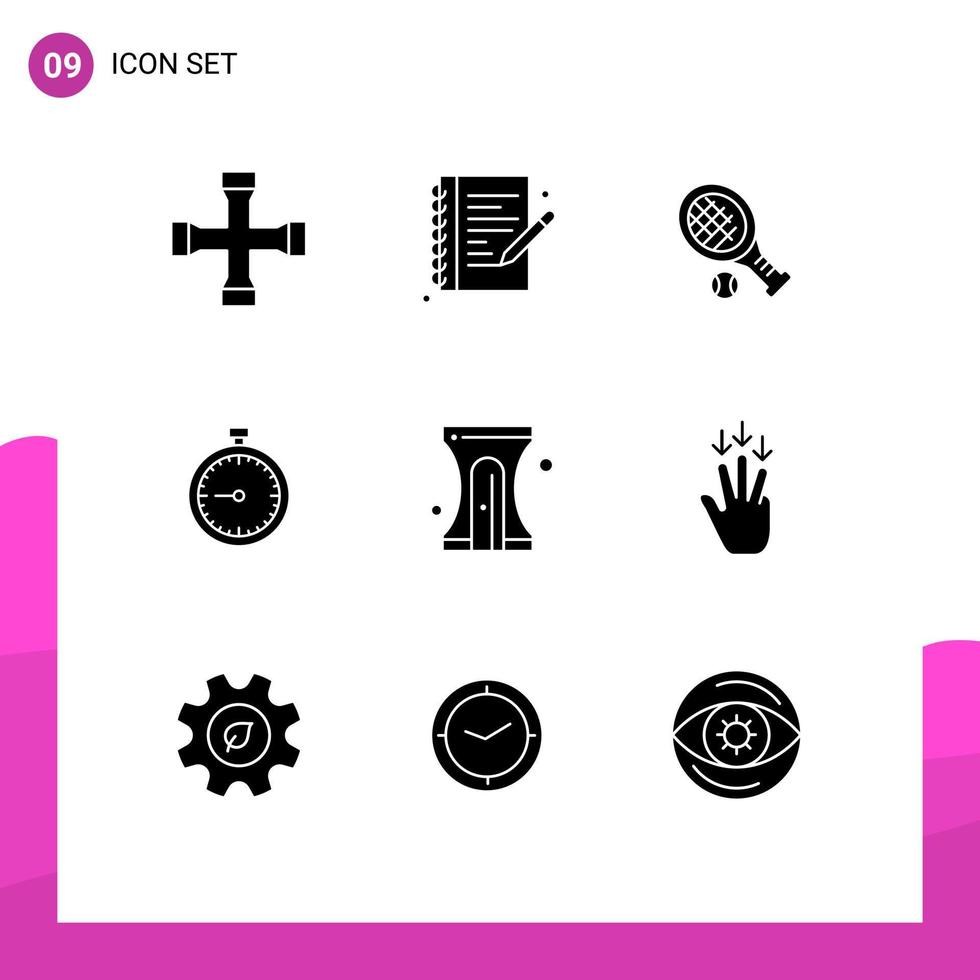 Pack of 9 Modern Solid Glyphs Signs and Symbols for Web Print Media such as timer quick ball fast stopwatch Editable Vector Design Elements