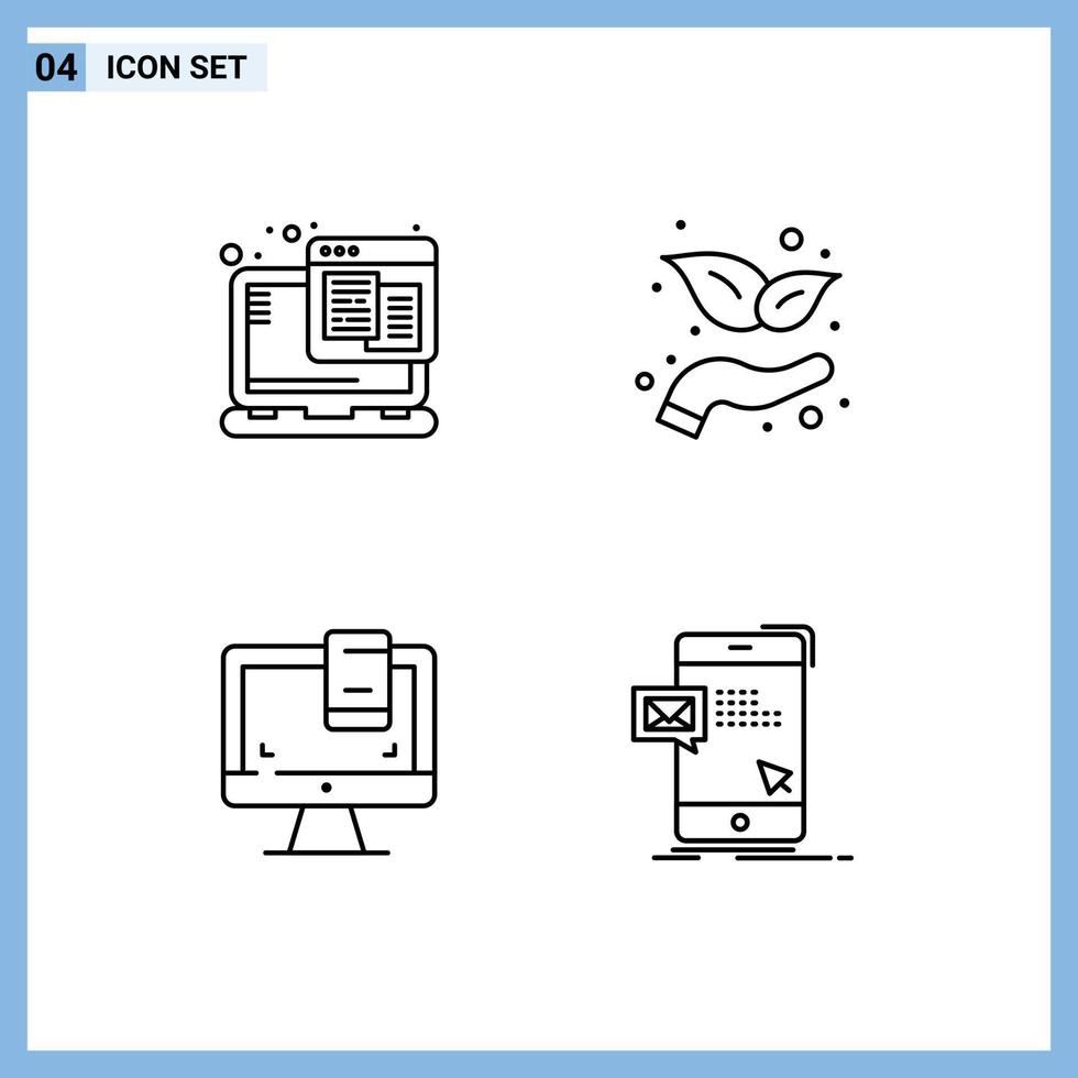 4 User Interface Line Pack of modern Signs and Symbols of technology monitor web startup bulk Editable Vector Design Elements