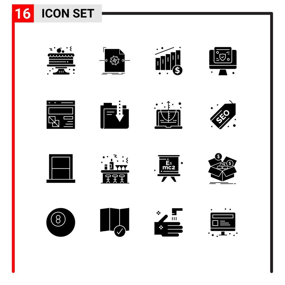 16 Solid Glyph concept for Websites Mobile and Apps page develop chart browser screen Editable Vector Design Elements Free Vector