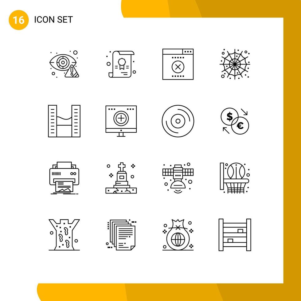 16 Universal Outlines Set for Web and Mobile Applications office space buildings error scary spider Editable Vector Design Elements