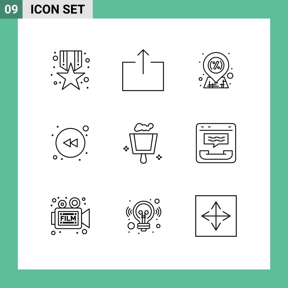 Editable Vector Line Pack of 9 Simple Outlines of call dustpan location broom left Editable Vector Design Elements Free Vector