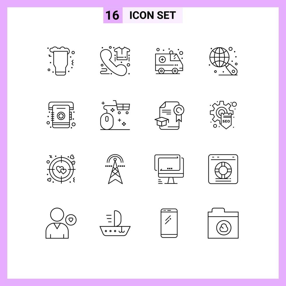 16 Universal Outlines Set for Web and Mobile Applications book search order internet medical Editable Vector Design Elements