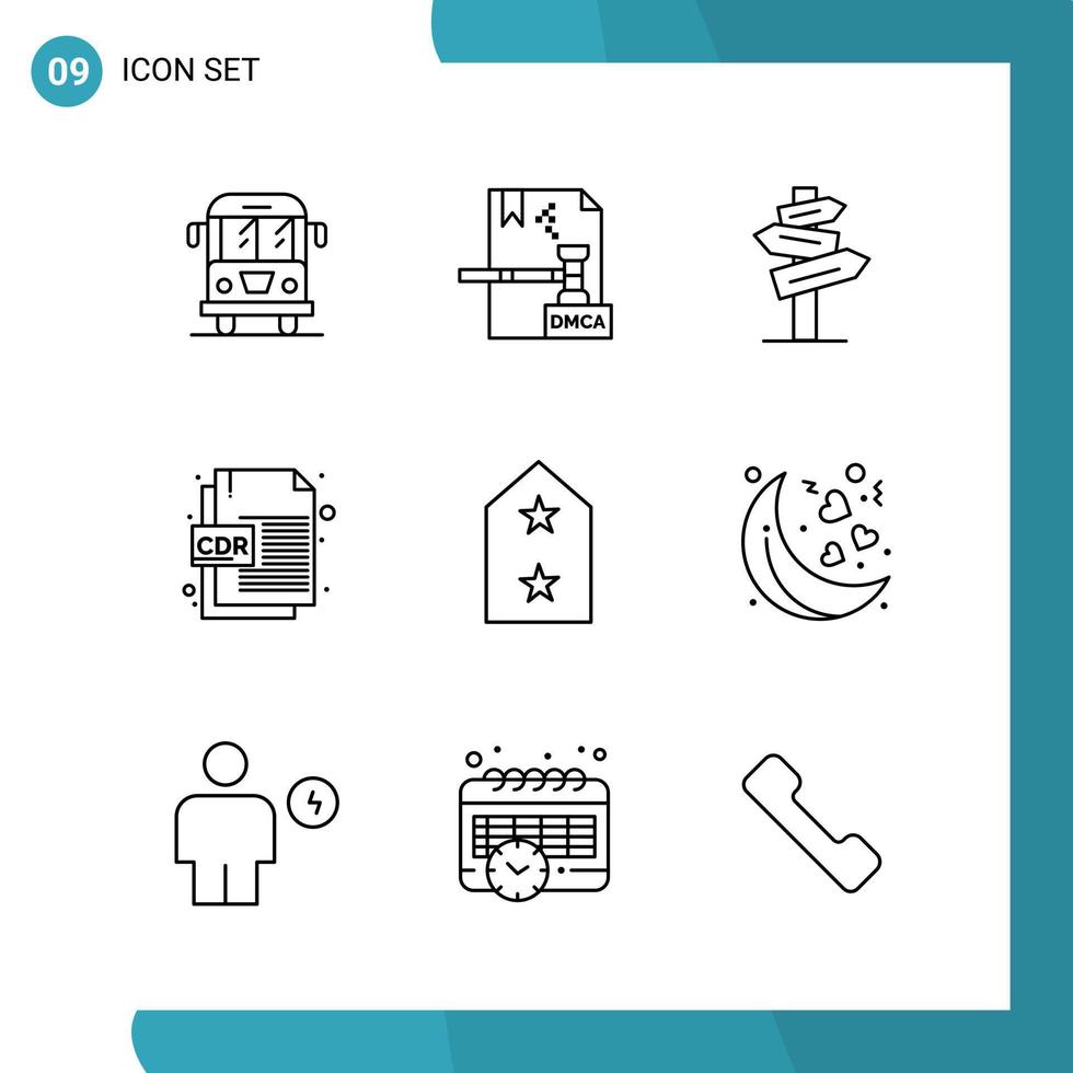 Vector Pack of 9 Outline Symbols Line Style Icon Set on White Background for Web and Mobile