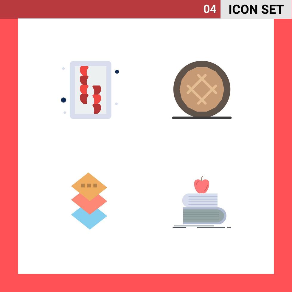 Pack of 4 Modern Flat Icons Signs and Symbols for Web Print Media such as chopping design tool dessert square Editable Vector Design Elements