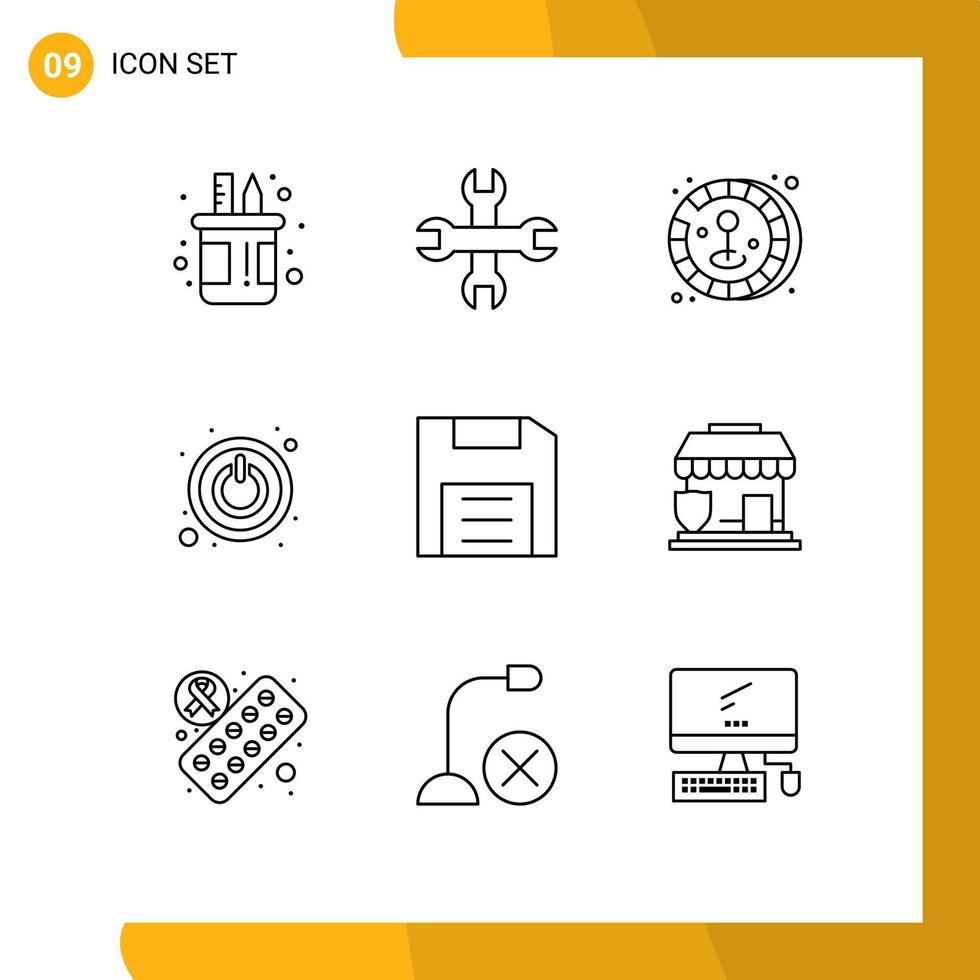Set of 9 Modern UI Icons Symbols Signs for floppy devices coin computers shutdown Editable Vector Design Elements
