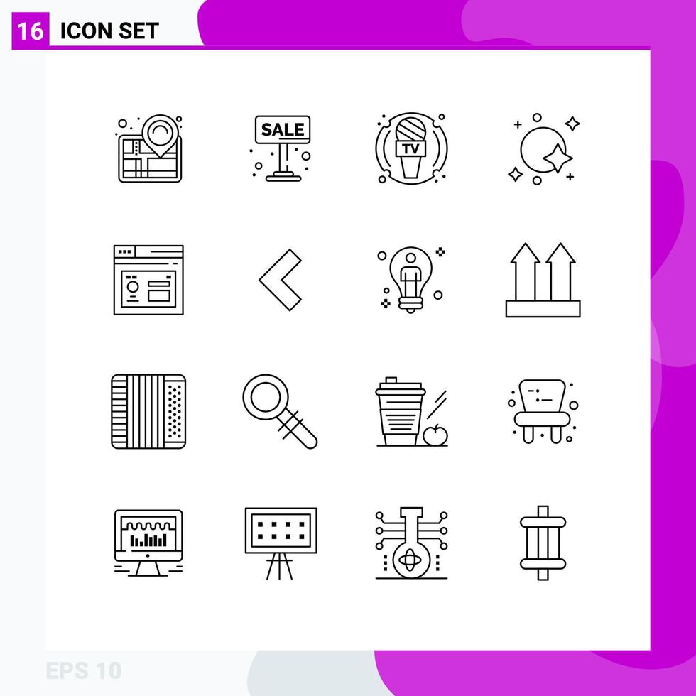 User Interface Pack of 16 Basic Outlines of spaceship satellite for sale galaxy news Editable Vector Design Elements Free Vector