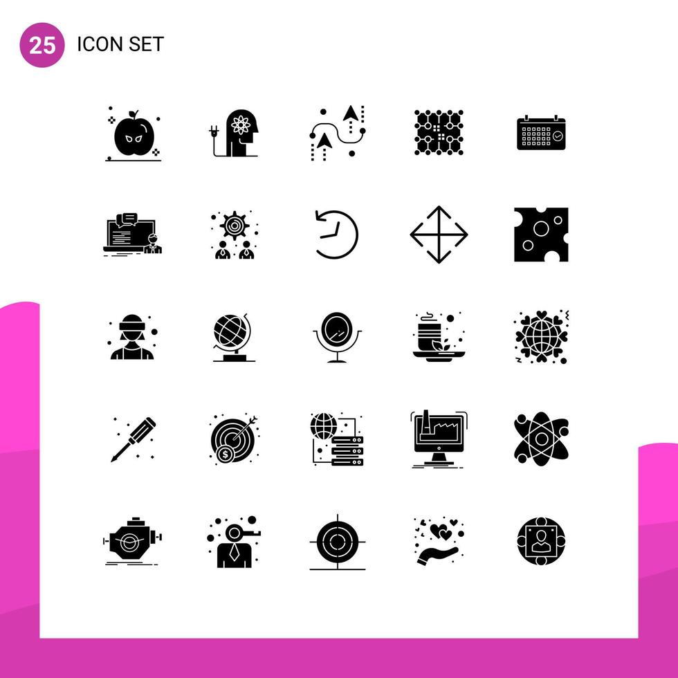 Pack of 25 Modern Solid Glyphs Signs and Symbols for Web Print Media such as material electricity coding connection programing Editable Vector Design Elements