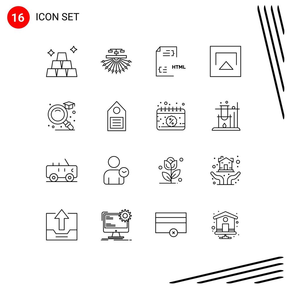 16 User Interface Outline Pack of modern Signs and Symbols of find play coding airplay html Editable Vector Design Elements Free Vector