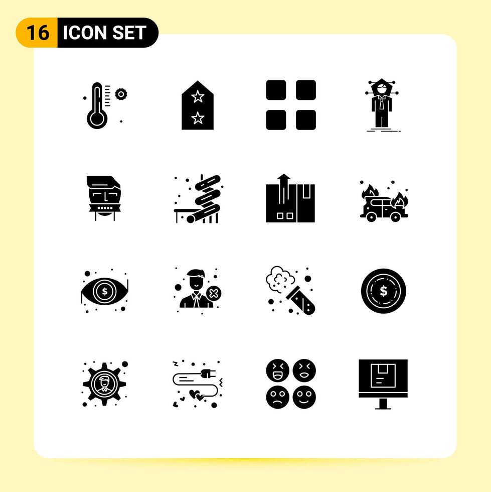 16 Universal Solid Glyphs Set for Web and Mobile Applications mouth solution calculator network connection Editable Vector Design Elements