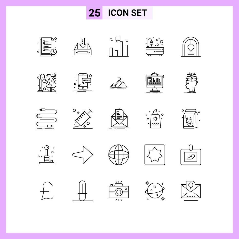 Editable Vector Line Pack of 25 Simple Lines of shower bathtub empty bath graph Editable Vector Design Elements