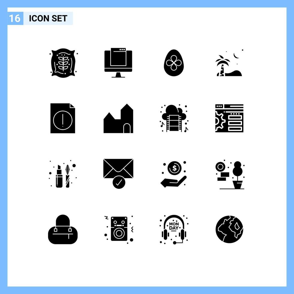 16 Universal Solid Glyphs Set for Web and Mobile Applications alert palm popup beach egg Editable Vector Design Elements