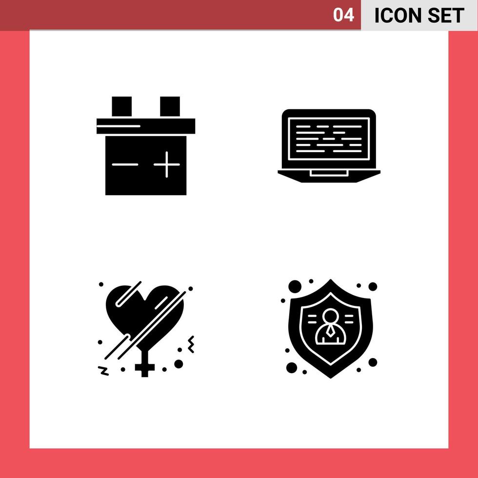 Modern Set of Solid Glyphs and symbols such as battery love coding computer action Editable Vector Design Elements Free Vector