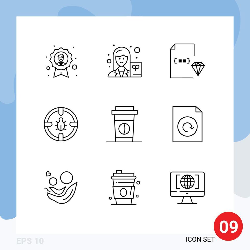 Mobile Interface Outline Set of 9 Pictograms of protection internet writer bug document Editable Vector Design Elements
