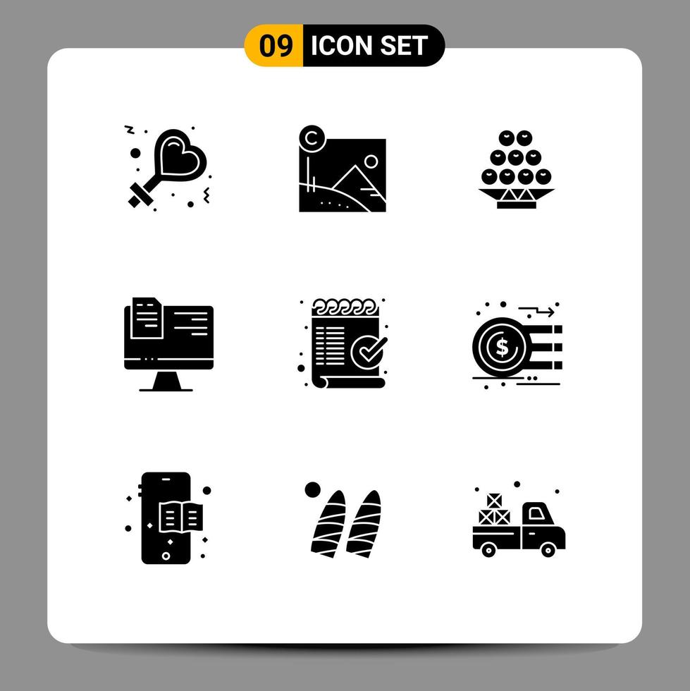 Mobile Interface Solid Glyph Set of 9 Pictograms of list check fruit online file Editable Vector Design Elements Free Vector