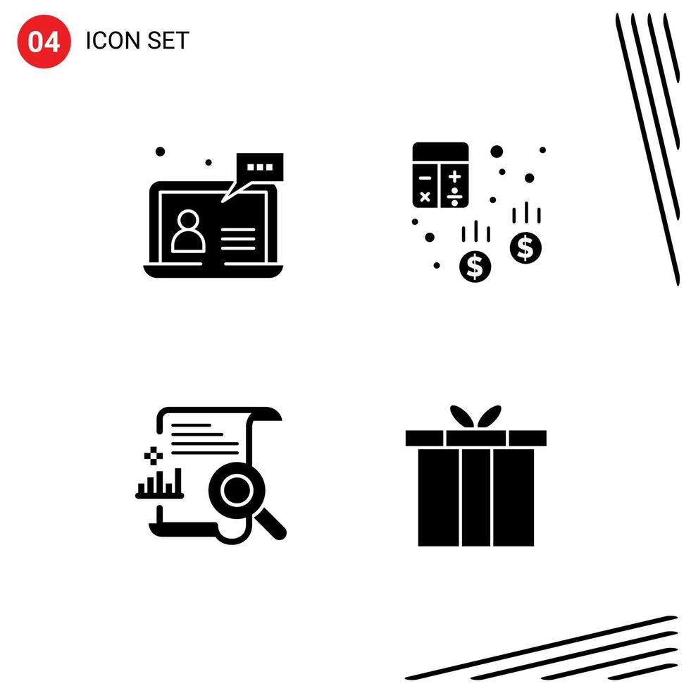 Mobile Interface Solid Glyph Set of 4 Pictograms of support finance customer audit content Editable Vector Design Elements
