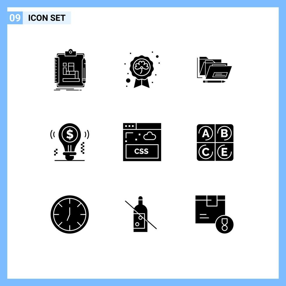 9 Universal Solid Glyphs Set for Web and Mobile Applications dollar bulb saint idea date Editable Vector Design Elements