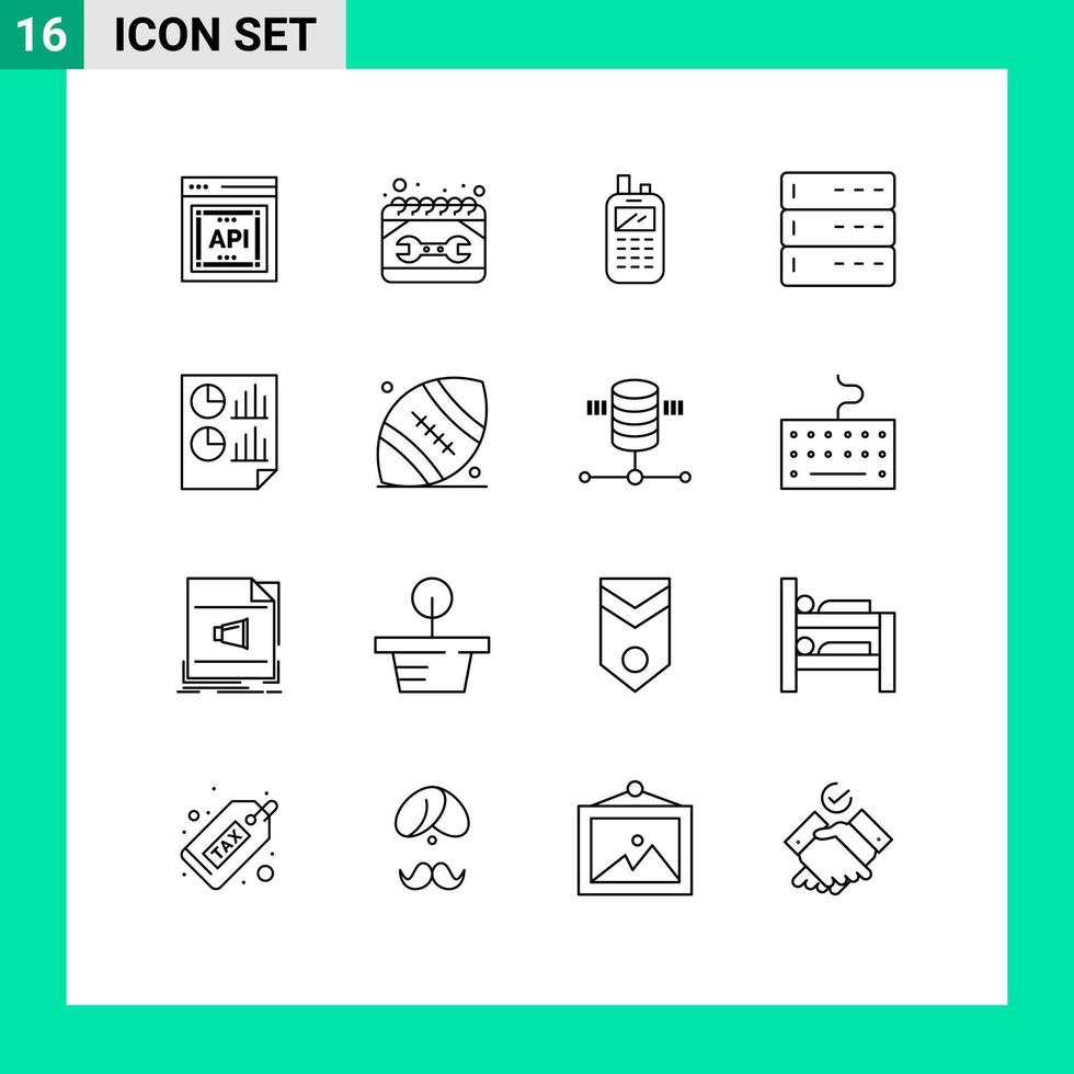 16 User Interface Outline Pack of modern Signs and Symbols of analytics devices spanner data wireless Editable Vector Design Elements