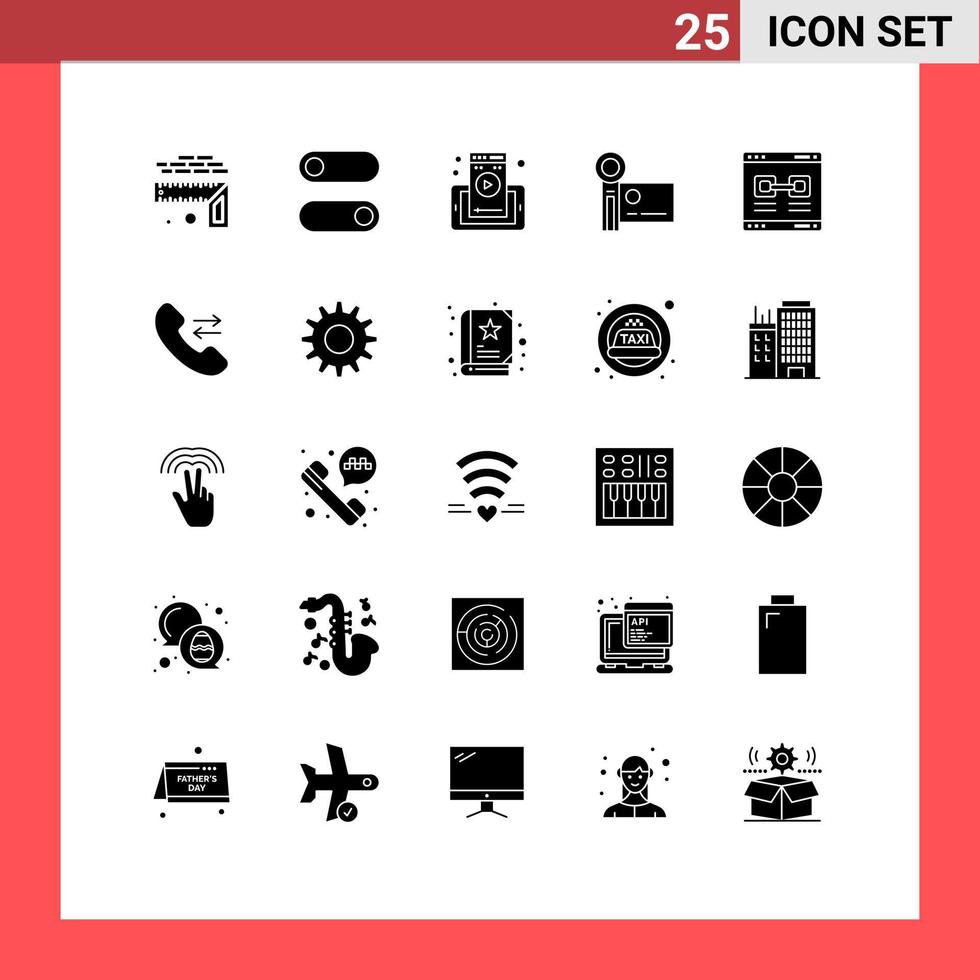 Mobile Interface Solid Glyph Set of 25 Pictograms of link video camera mobile recording digital camera Editable Vector Design Elements Free Vector