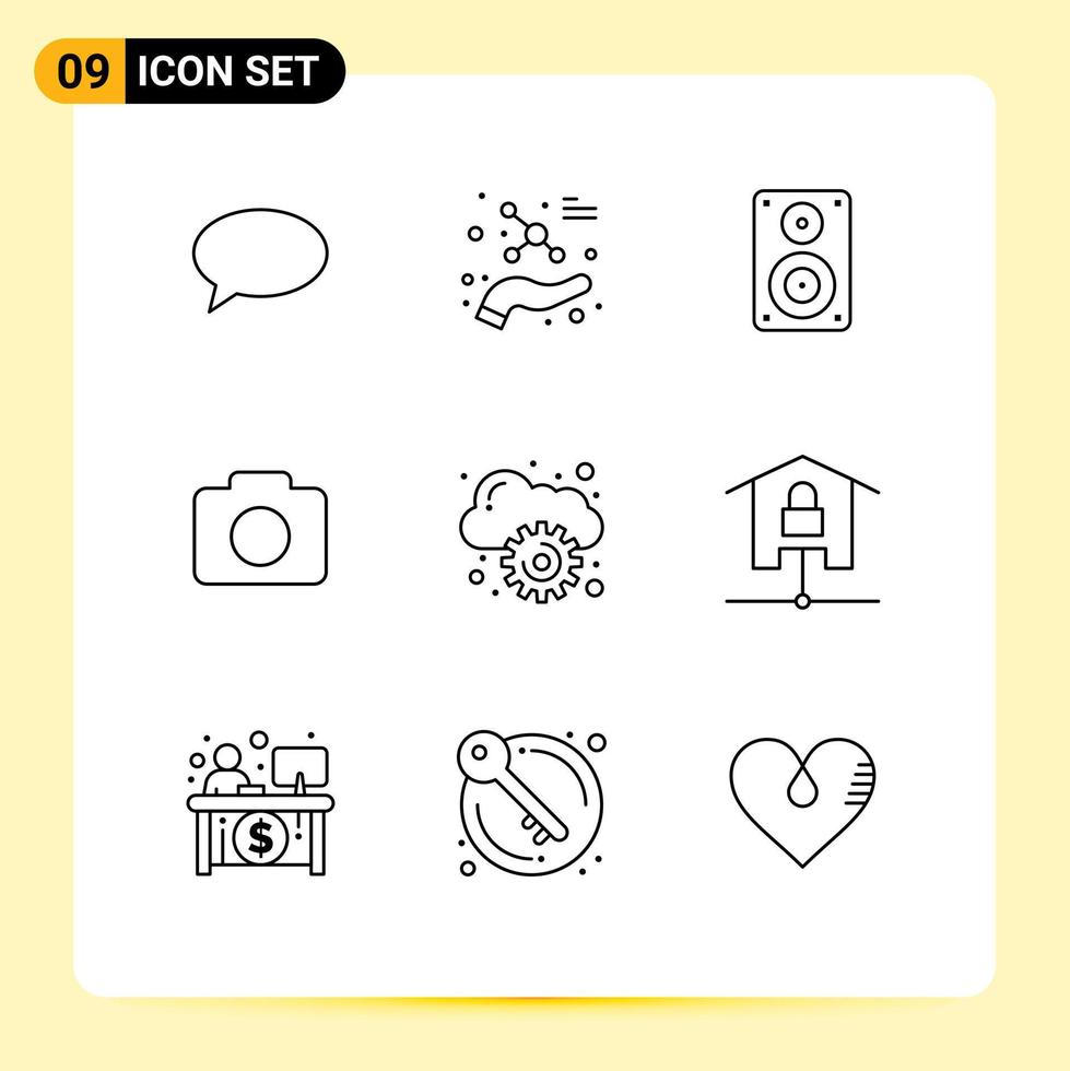 9 Thematic Vector Outlines and Editable Symbols of computing image audio camera professional Editable Vector Design Elements Free Vector
