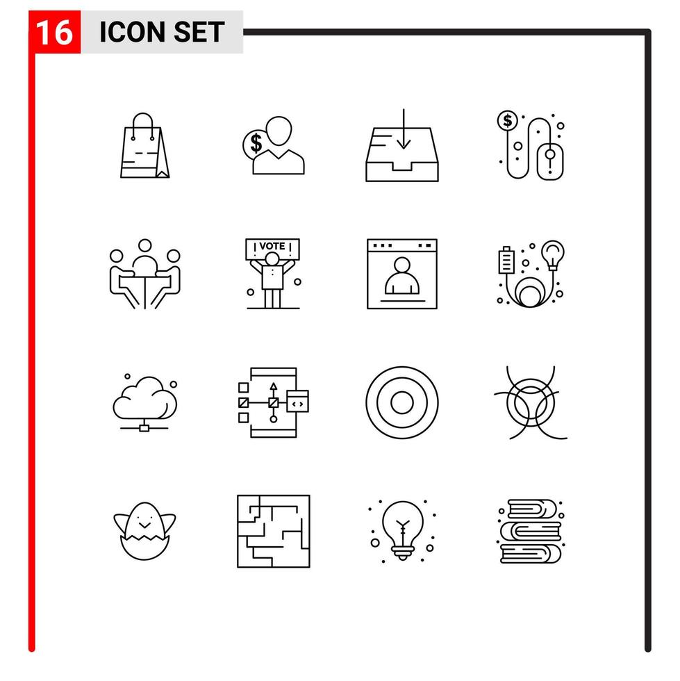 Set of 16 Modern UI Icons Symbols Signs for mouse dollar finance click mailbox Editable Vector Design Elements