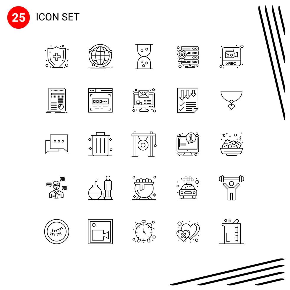 25 Thematic Vector Lines and Editable Symbols of business recording sand clock record web hosting Editable Vector Design Elements Free Vector
