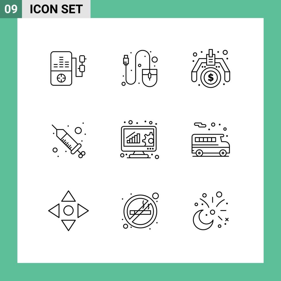 Universal Icon Symbols Group of 9 Modern Outlines of data management analysis making spa injection Editable Vector Design Elements Free Vector