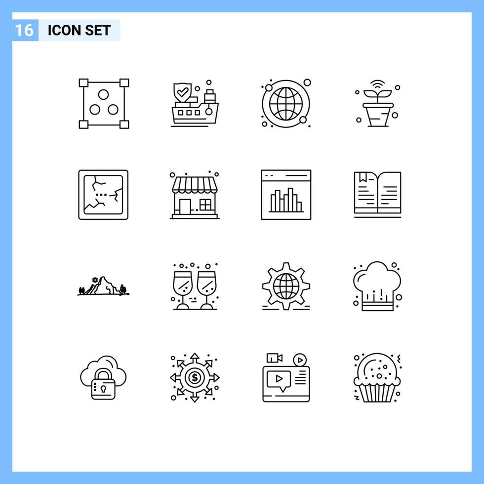 16 Thematic Vector Outlines and Editable Symbols of mirror broken internet wifi nature Editable Vector Design Elements