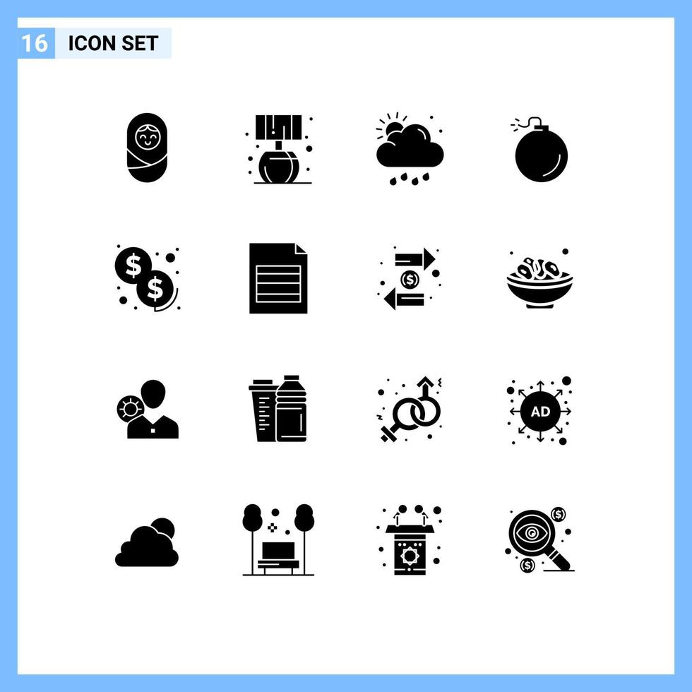 Modern Set of 16 Solid Glyphs Pictograph of excel payment weather investment explosion Editable Vector Design Elements