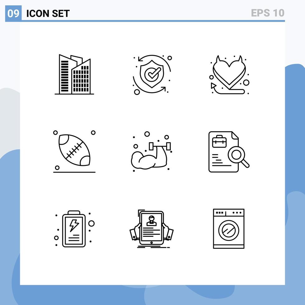 Editable Vector Line Pack of 9 Simple Outlines of weightlifting exercise devil dumbbell ball Editable Vector Design Elements Free Vector