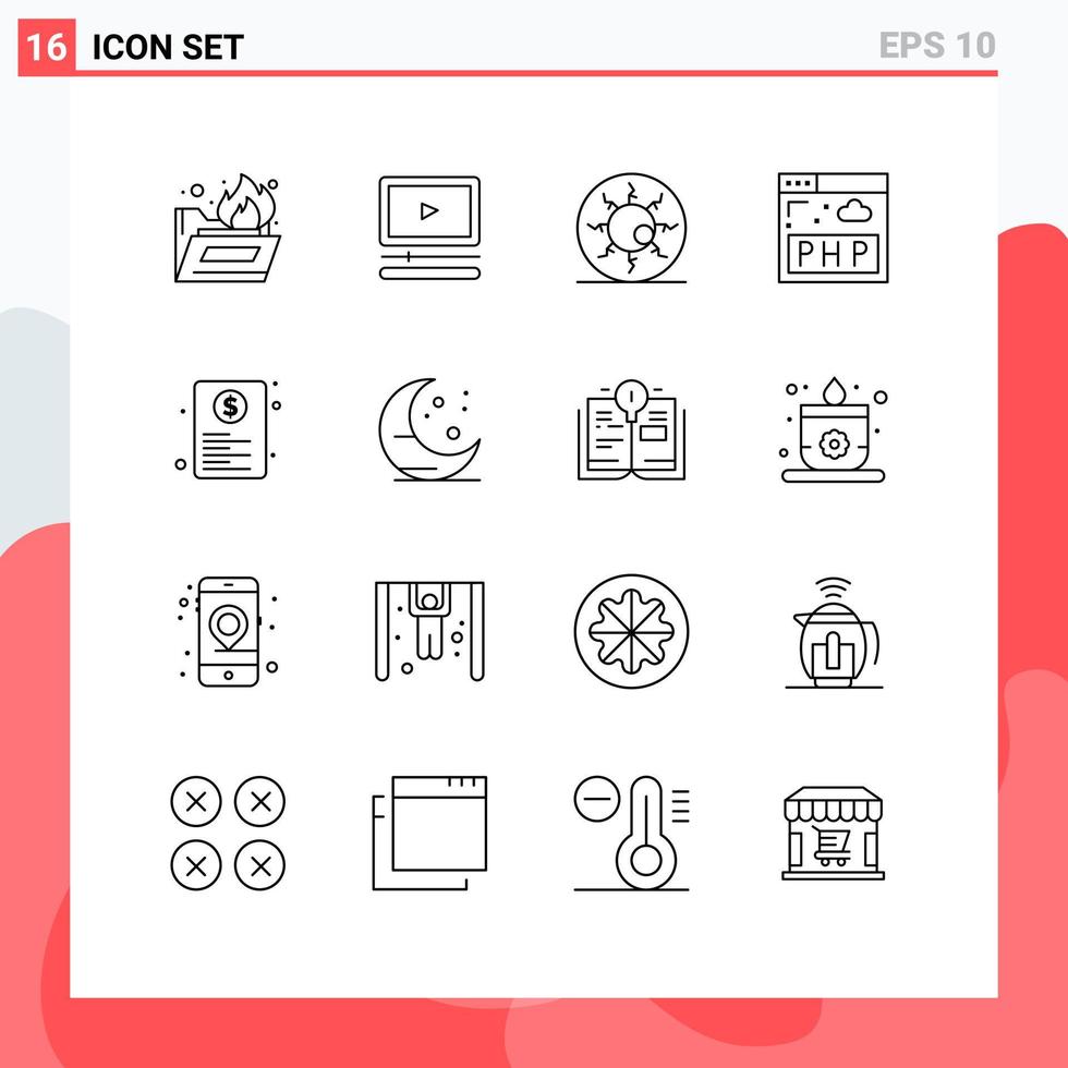 16 Thematic Vector Outlines and Editable Symbols of page document ghost eyeball program data Editable Vector Design Elements Free Vector
