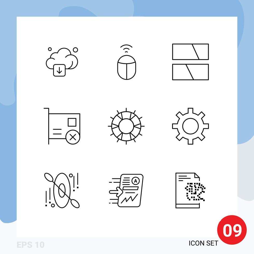Stock Vector Icon Pack of 9 Line Signs and Symbols for lifebuoy pci frame hardware computers Editable Vector Design Elements