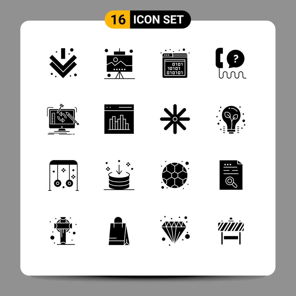 Group of 16 Solid Glyphs Signs and Symbols for project support code service help Editable Vector Design Elements Free Vector