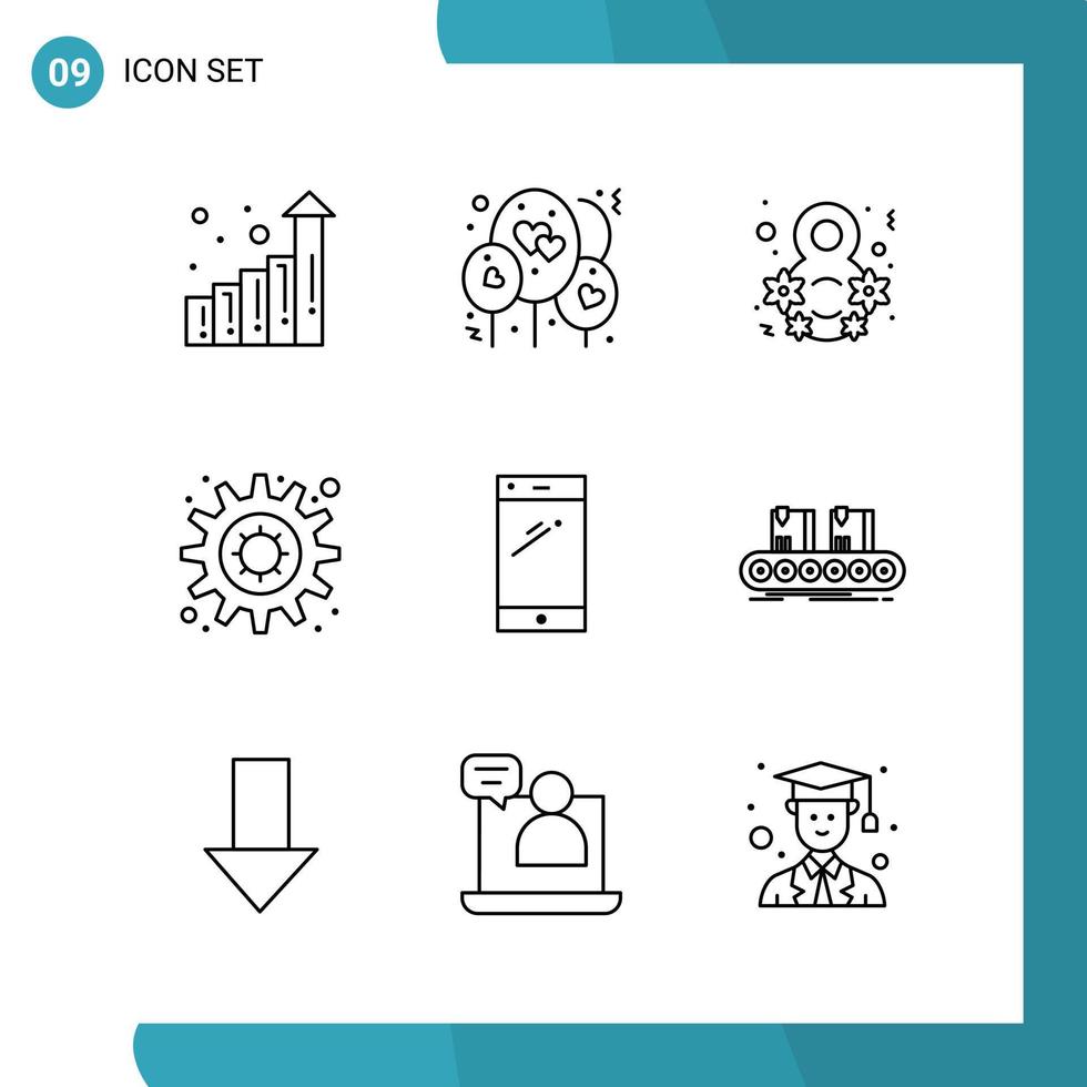 Vector Pack of 9 Outline Symbols Line Style Icon Set on White Background for Web and Mobile