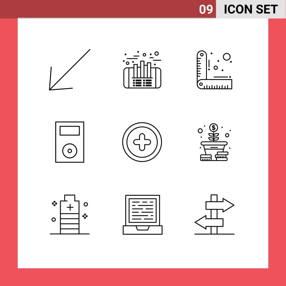 Group of 9 Modern Outlines Set for user interface measure technology ipod Editable Vector Design Elements