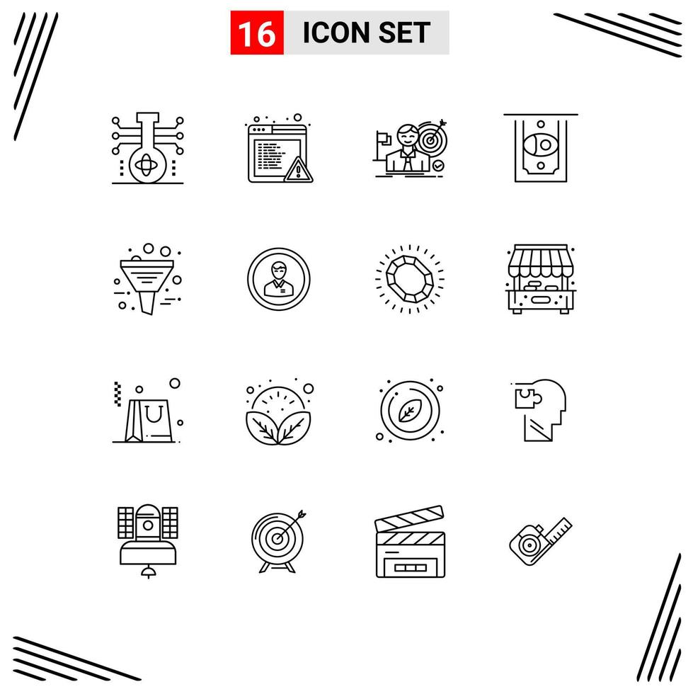 16 Universal Outlines Set for Web and Mobile Applications data money business cash success Editable Vector Design Elements